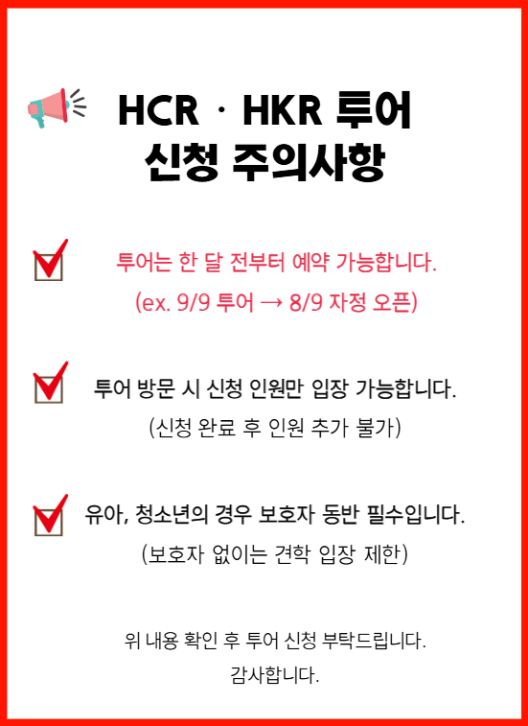 투어신청 서비스에 기입한 개인정보는 견학완료일 이후 1년간 보관후 지체없이 파기됩니다.